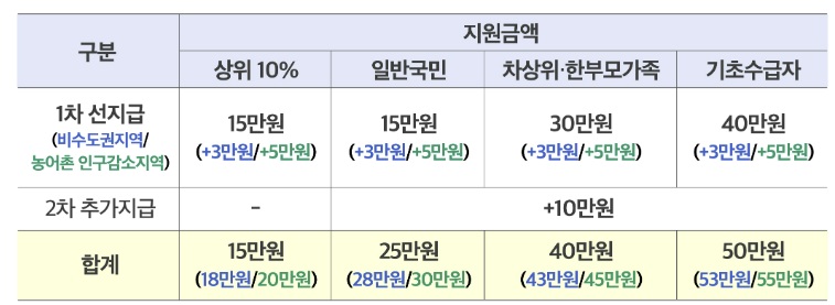 비수도권지역은 +3만원, 농어촌 인구감소지역은 +5만원을 추가로 받을 수 있어요.